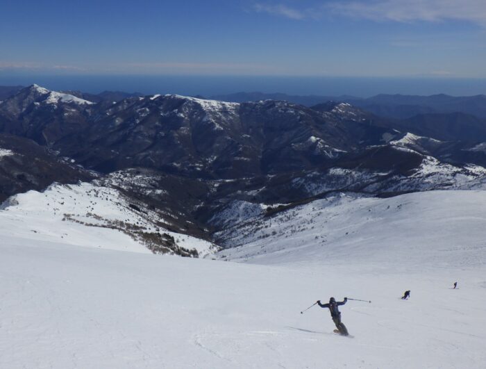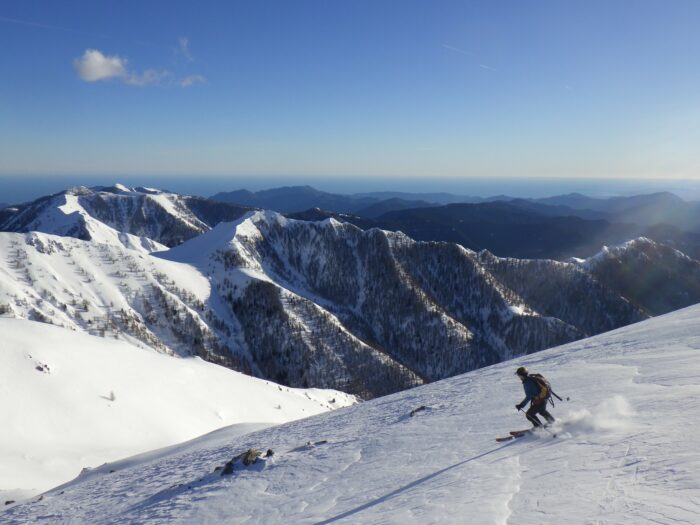 Dès la première longueur l’espacement entre les points de protection possibles nous rappelle que cette voie à un caractère alpin malgré son extreme proximité avec la mer !