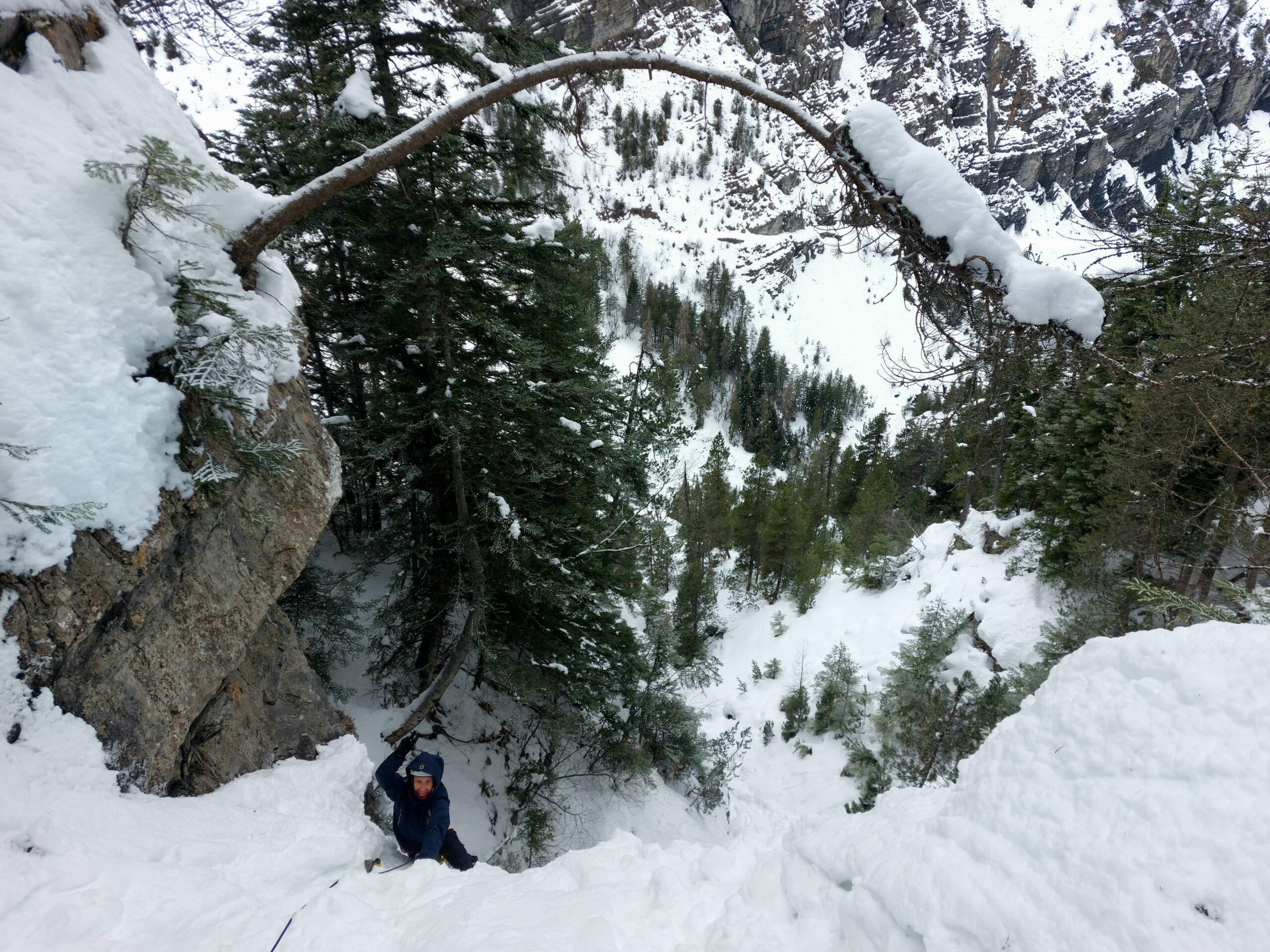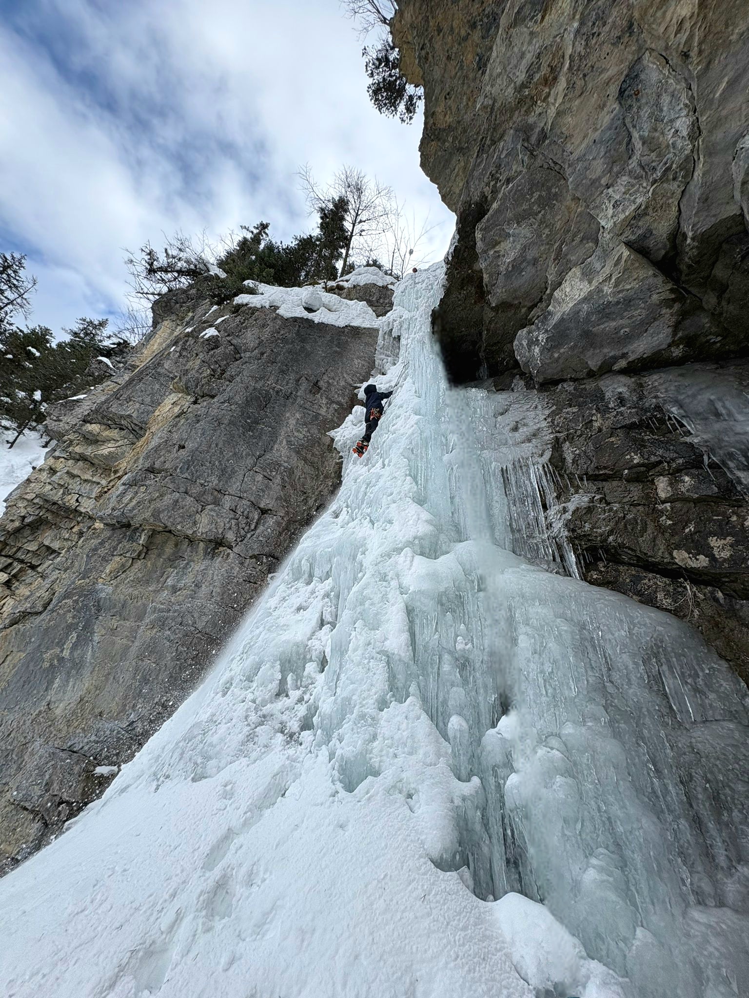 Les deux premières longueurs correspondent à deux petits ressauts en 3 de 12m chacun qui constituent une formidable entrée en matière pour découvrir en douceur l’escalade sur glace. Ceux-ci permettent également de s’échauffer afin d’aborder au mieux la longueur clef, le « free-standing » de L3 souvent appelé abusivement « cigare » :