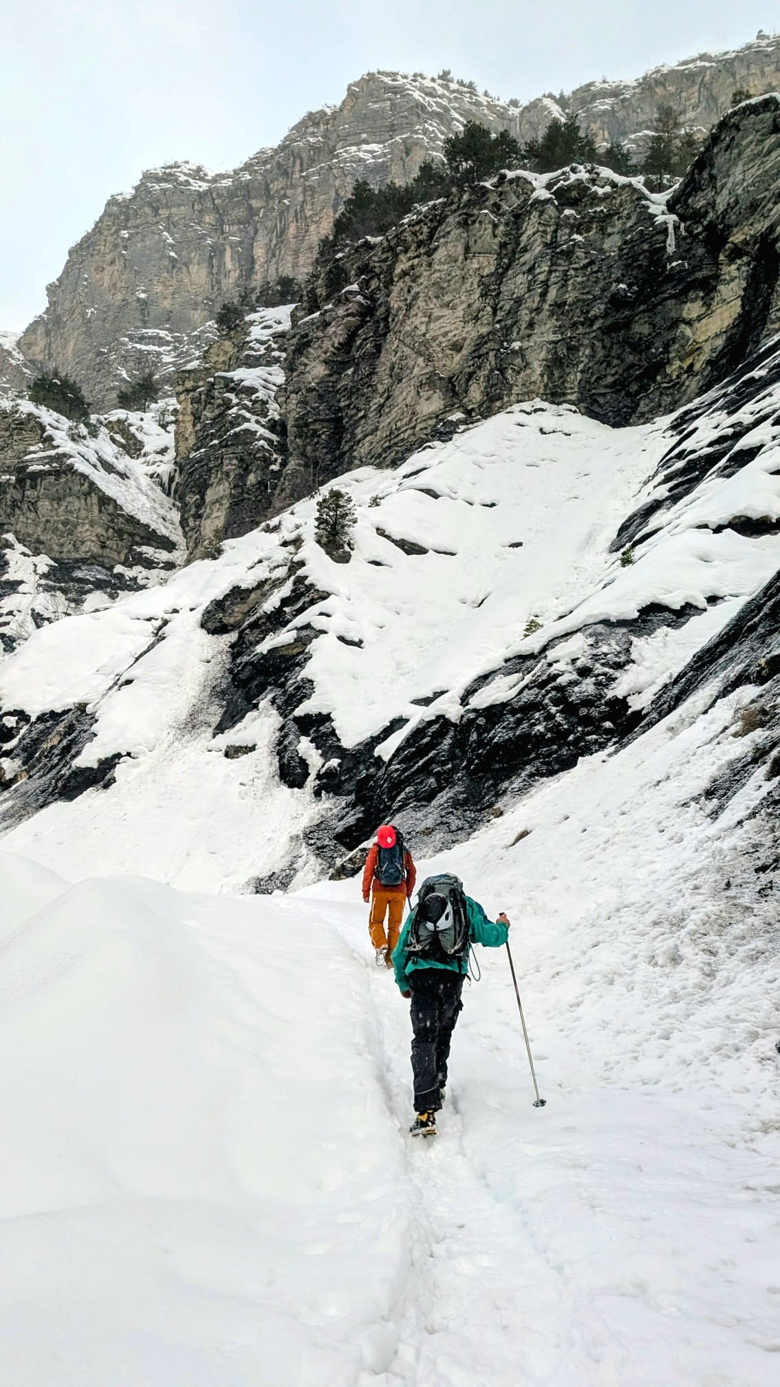 Cette année la neige ne manque pas dans le Mercantour. Grâce à la fréquentation, et ce malgré les chutes de neige régulières, la trace est confortablement faite.