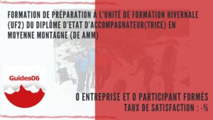 L’encadrement des sorties de la formation de préparation à l’UF hivernale du Diplôme d’Etat d’Accompagnateur(trice) en Moyenne Montagne et l’action de formation sont assurés par l’équipe d’Accompagnateurs(trices) en Moyenne Montagne diplômés de Guides06.