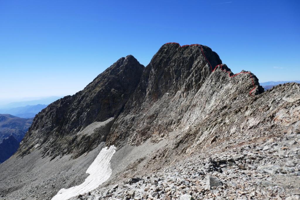 Ensuite l’arête Nord-Est reliant le Gelas 3143m au Balcon du Gelas 3085m :