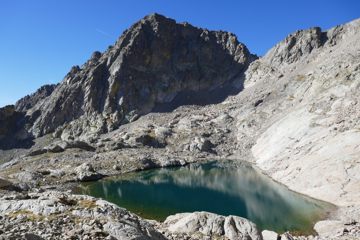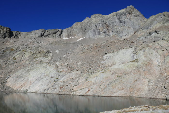 Au bout du Lac Long 2566m, la face Sud-Ouest de la Malédie 3059m :