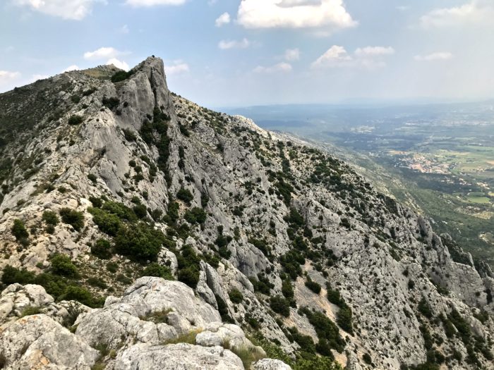 A partir de là le sommet n’est plus très loin (gradins et crapahutes). Il laisse apparaître plus à l’Est, le bau de l’Aigle et le pic des Mouches, respectivement 975m et 1011m :