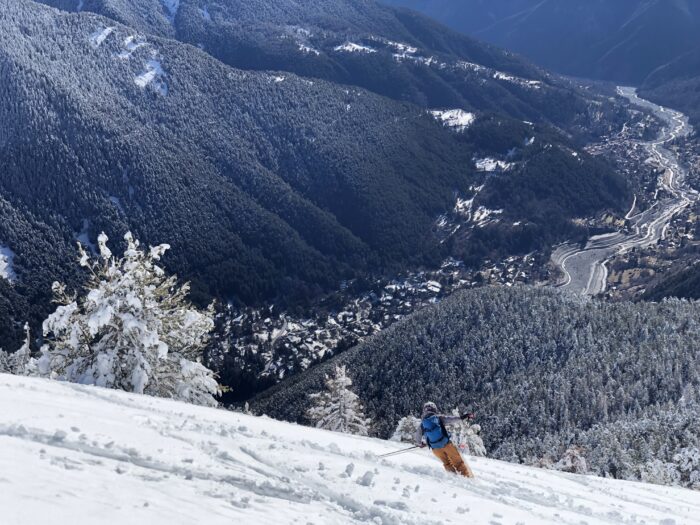 Descente directe au Pépoiri, neige douce et lisse sous les spatules